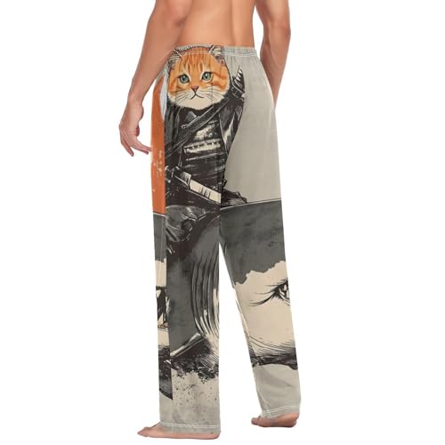 Men's Pajama Bottoms Cute Cat Samurai Lounge Pajama Pants Sleep Bottoms with Pockets for Men S 3