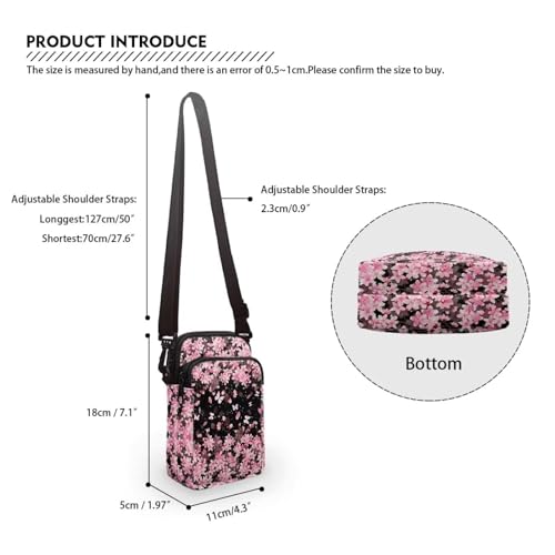 More information about HUGS IDEA Cherry Blossom Print Small Messenger Bag Coin Packet Mini Handbag Crossbody Shoulder Bags with Adjustable Strap
