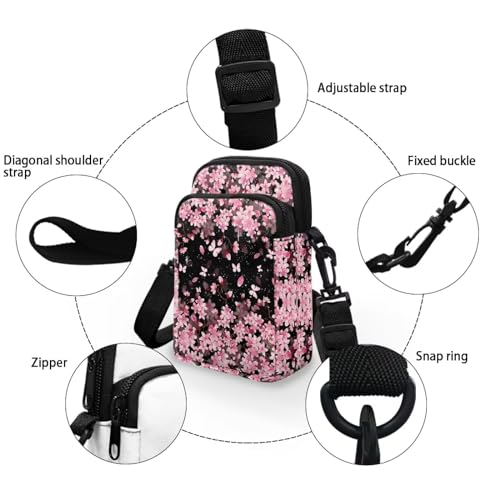 HUGS IDEA Cherry Blossom Print Small Messenger Bag Coin Packet Mini Handbag Crossbody Shoulder Bags with Adjustable Strap 5