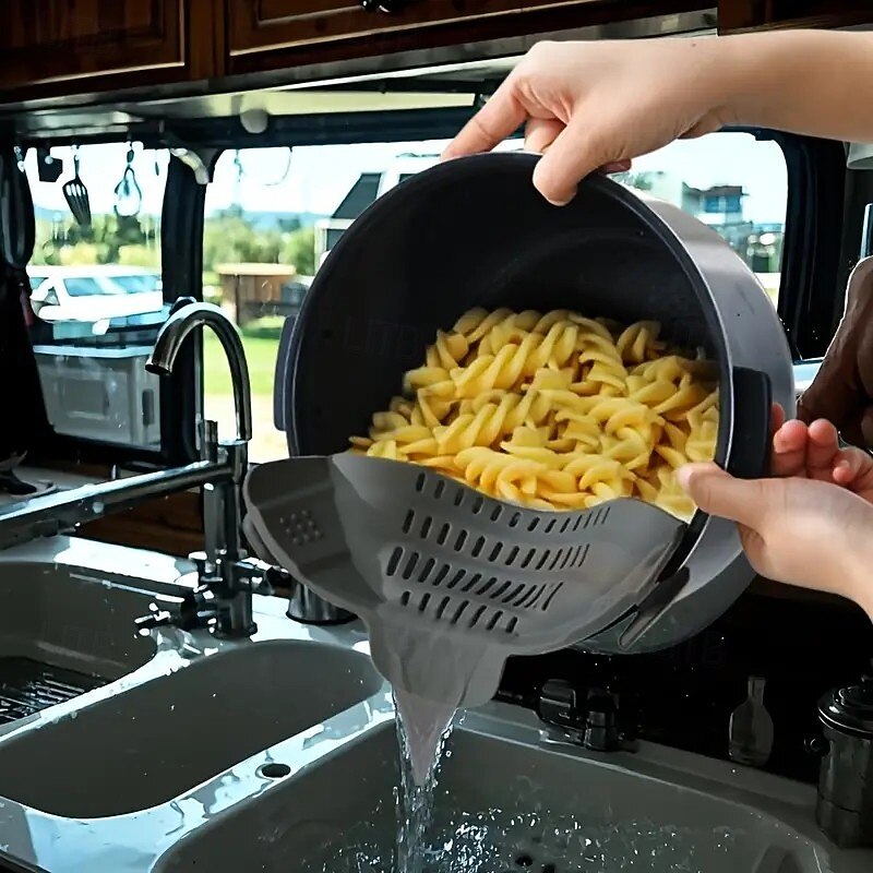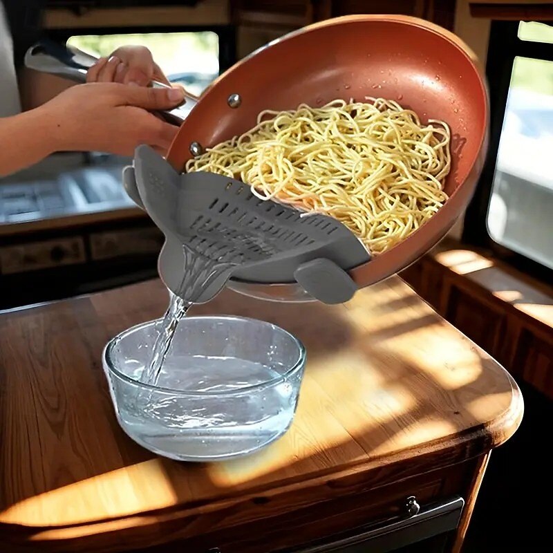 HOT ! Adjustable Silicone Clip-On Strainer – Fits Pots and Bowls, No Electricity Needed, Perfect for Pasta, Vegetables, Fruits, Durable Flexible Handheld Kitchen Tool for Home & RV