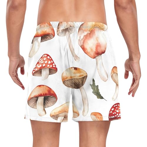 xigua Autumn Mushrooms Mens Swim Trunks with Liner, 5 inch Quick Dry Mens Boardshorts for Beach 5