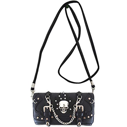 WESTERN ORIGIN Punk Gothic Skull Chain Crossbody Handbag Removable Strap Purse Women Single Shoulder Bag/Wallet Black 1