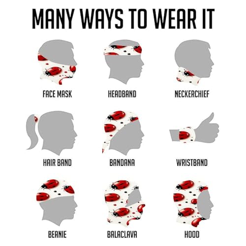 Fabric type: 100% PolyesterCare instructions: Hand WashOrigin: Imported【Comfortable Material】This Red Ladybug versatile bandana gaiter headwear can be worn up to 13 different ways to ensure you will be ready for all occasions. Face mask stretchy design to be universal fit and can be used for different purpose.【one-of-a-kind Bandana with Cool Patterns】You want something pretty cool and eye-catching to wear as face mask, neck gaiter, headwear, scarf, or headband etc. We design unique patterns to meet your request!【Upf 50 Protection】Upf 50 face mask is lightweight, moisture wicking fabric, super soft and breathable, no sticky feelings if sweaty, our neck gaiter absorbs sweat to help get dry faster.【Breathable Material】We use quick-dry breathable poly-spandex fabric to make sure you stay cool and comfortable all day long without getting sun burned. Our 4-way stretch material provides a snug comfortable fit so your gaiter stays in place.【Multipurpose Design】It can be worn as a UV protection face bandana mask, fishing mask, balaclava, hood, neck gaiter, fishing sun scarf, or head band just to name a few so you are prepared for any outdoor sports. Perfect for everyday use. top-grade materials and excellent craftsmanship ensure long-lasting durability.