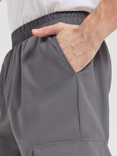 Men's Casual Cargo Pants with Elastic Waistband & Drawstring, Bungee Cord Leg Openings, Comfortable Utility Work Pants 7