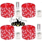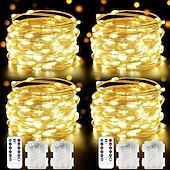4 Pcs 10M/32FT 100LED Beads Fairy String Lights Halloween Christmas Valentine's Day Wedding Festival Party Gift DIY Copper Wire Light String IP44 Waterproof AAA Waterproof Battery Box Remote Control 20