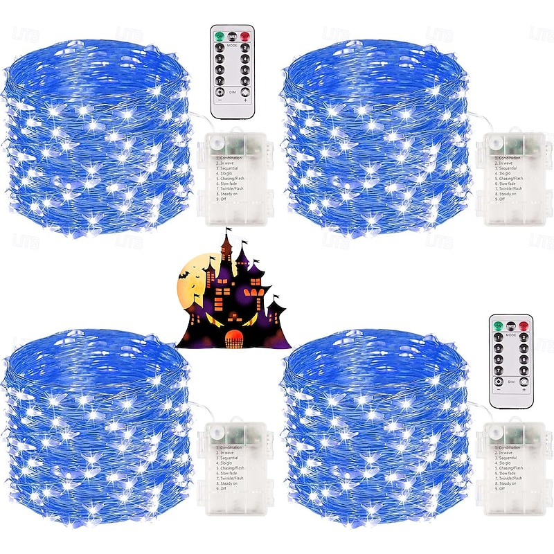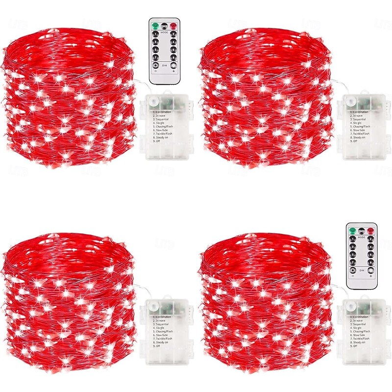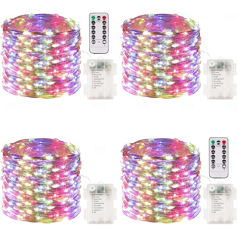 4 Pcs 10M/32FT 100LED Beads Fairy String Lights Halloween Christmas Valentine's Day Wedding Festival Party Gift DIY Copper Wire Light String IP44 Waterproof AAA Waterproof Battery Box Remote Control 8