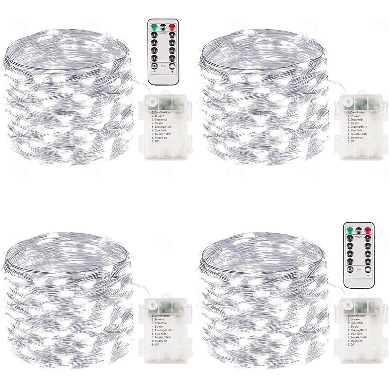 $23.99 - 4 Pcs 10M/32FT 100LED Beads Fairy String Lights Halloween Christmas Valentine's Day Wedding Festival Party Gift DIY Copper Wire Light String IP44 Waterproof AAA Waterproof Battery Box Remote Control 2025. Shop for cheap Battery String Lights online? Buy at lightinthebox.com on sale today!