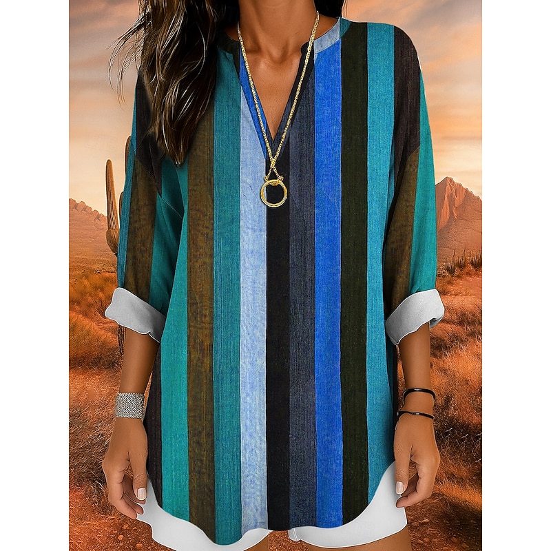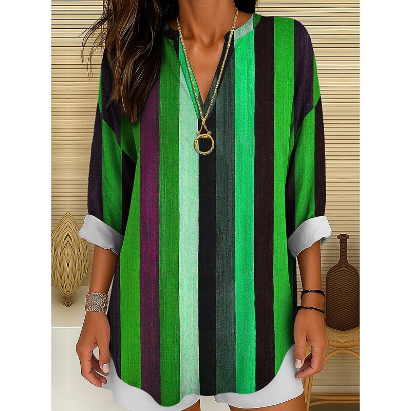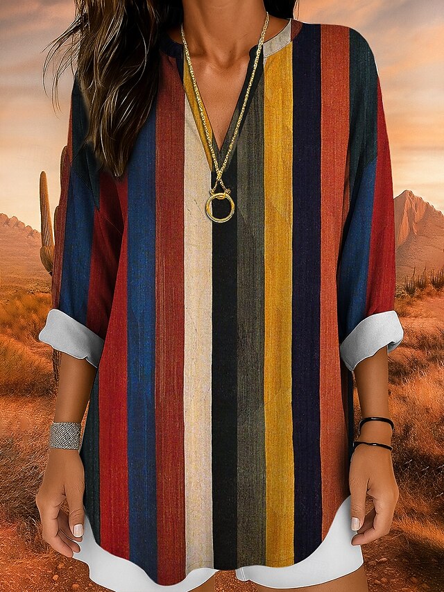 Women's Shirt Cotton Linen Shirt Blouse Graphic Geometric Striped Daily Hawaiian Business Long Sleeve V Neck Regular Tops Work Daily Holiday Buttons Print Yellow Red Blue Purple Green Summer Spring 6