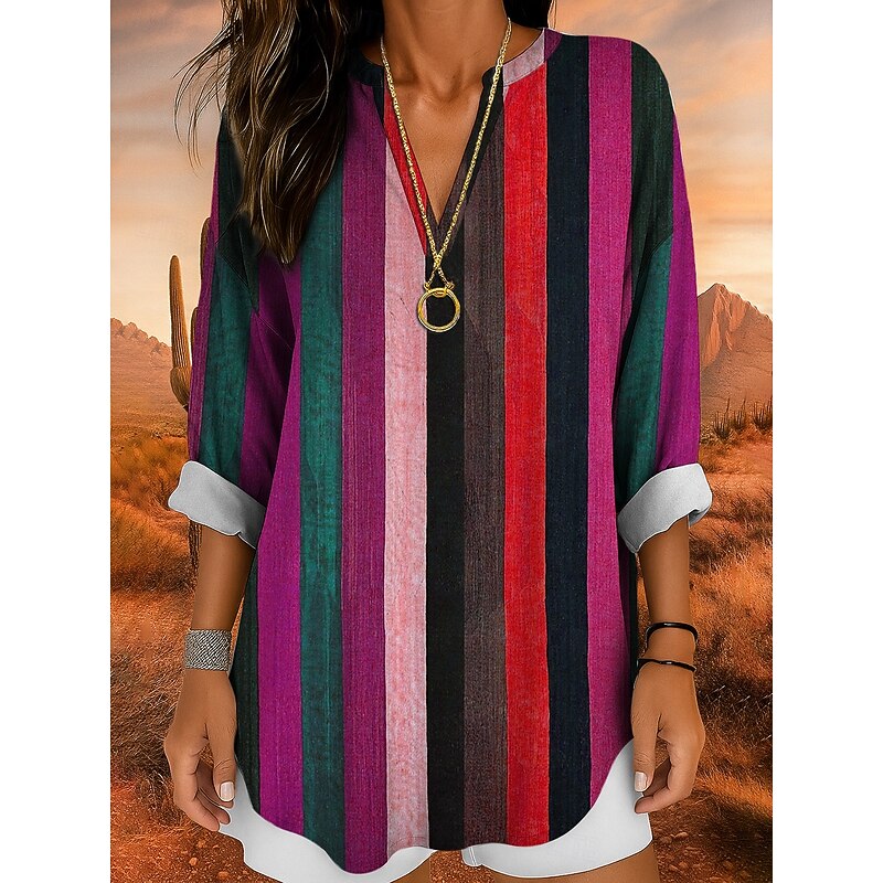 HOT ! Women's Shirt Cotton Linen Shirt Blouse Graphic Geometric Striped Daily Hawaiian Business Long Sleeve V Neck Regular Tops Work Daily Holiday Buttons Print Yellow Red Blue Purple Green Summer Spring