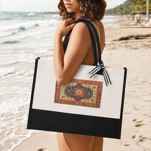 HOT ! Oriental Persian Turkish Carpet Pattern Eco-Friendly Canvas Tote Bag - Reusable Shopping Bag For Travel, Beach, Gym & Gifts