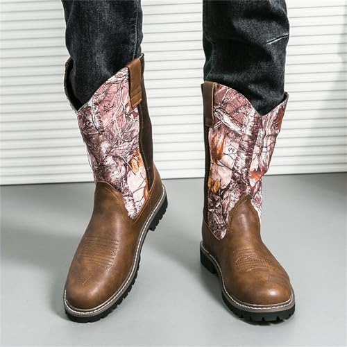 Western Cowboy Boots for Men Soft Toe,Men's Waterproof Round Toe Work Boots for Men 6
