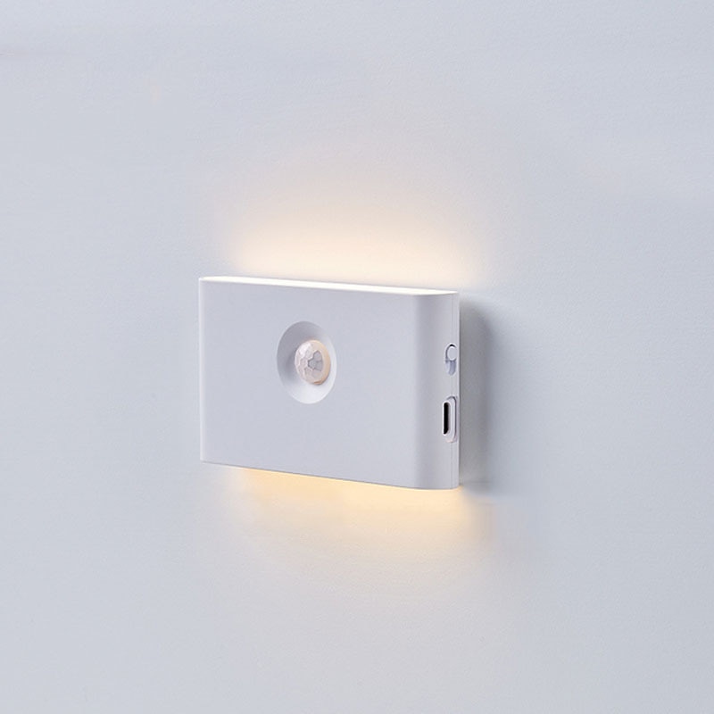 PIR Motion Sensing Night Light USB Rechargeable LED Human Body Sensing Night Light Smart Light Control Wall Lamp for Room Wall Wardrobe Home Bathroom Shoe Cabinet Bedroom Lighting 11