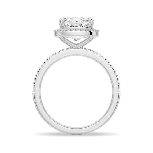 • PREMIUM MATERIAL AND DESIGN: Crafted in 14K white gold vermeil, the ring combines luxurious white gold luster with a durable, rhodium-finished coating, making it hypoallergenic and perfect for daily wear. This engagement ring features a brilliant 1.5-carat diamond-equivalent moissanite cushion-cut stone, surrounded by a radiant halo, ensuring maximum brilliance and a timeless design.