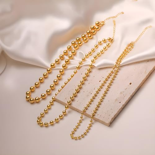 - JNF Golden Beaded Necklace High-Polished Basic Metal Ball Bead Chain Choker Necklace Christmas Jewelry Gifts