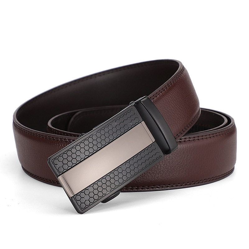 More information about Men's Dress Belt Leather Belt Ratchet Belt Black Brown Cowhide Alloy Fashion Plain Daily Wear Going out Weekend