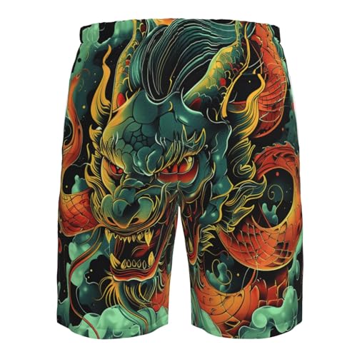 Men's Quick Dry Swim Shorts Demon Dragon Asian Japanese Style Green Beach Trunks with Pockets 1