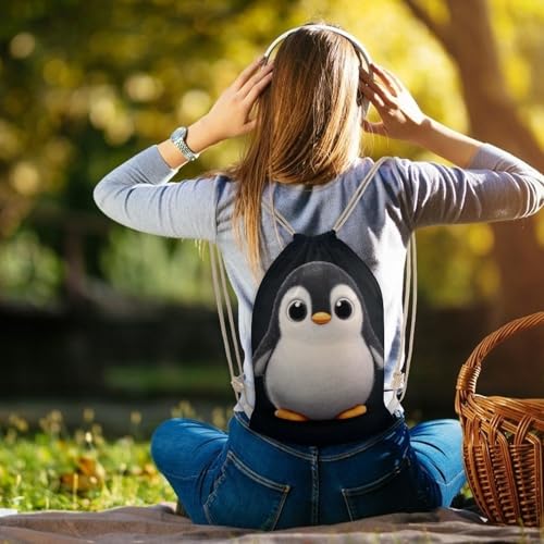 Drawstring Backpack Foldable Draw String Bags Cute Penguin Sackpack Sports Gym Bag for Shopping Yoga 5