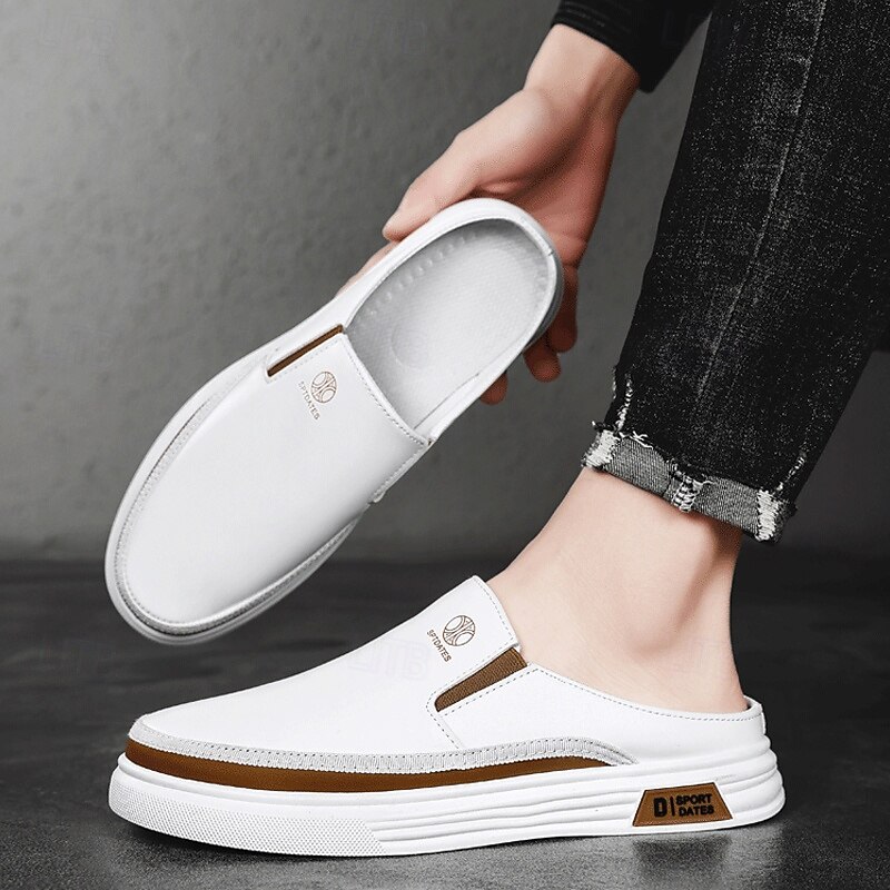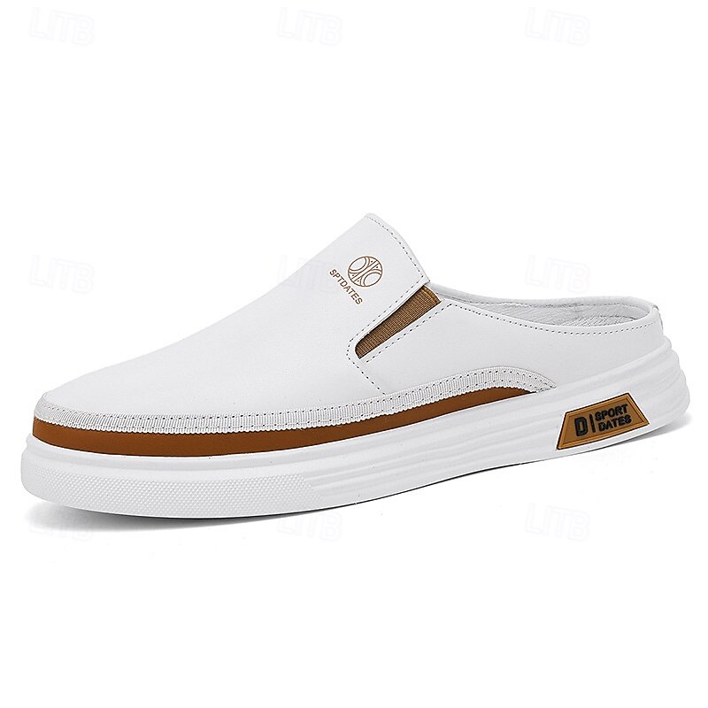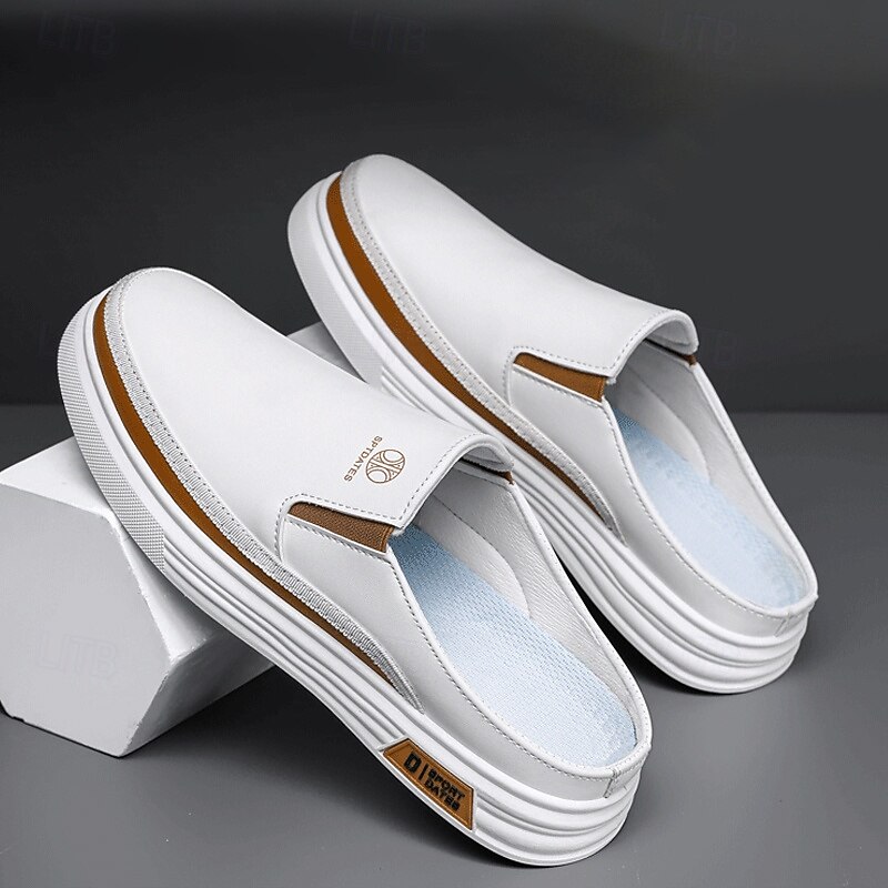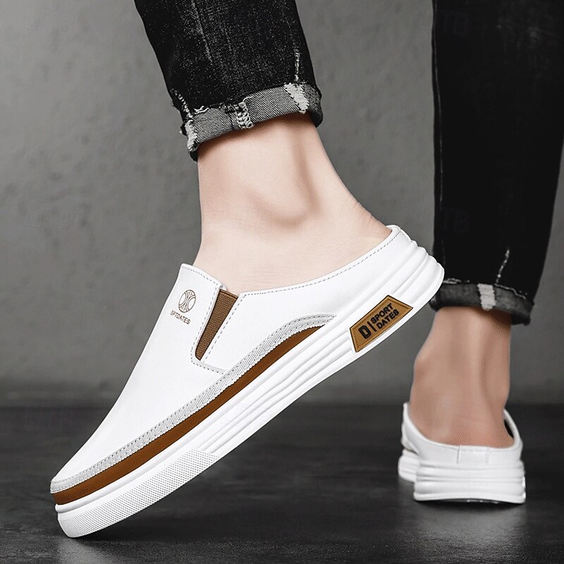 HOT ! Men's White Casual Slip-On Shoes with Stylish Brown Detailing and Flexible Rubber Outsoles - Ideal for Relaxed Day Trips and Weekend Outings