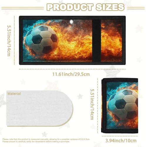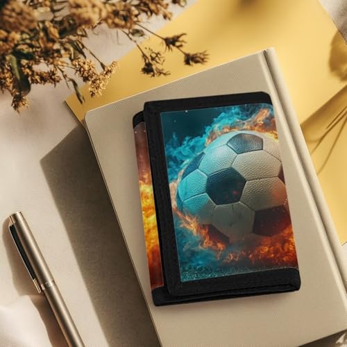 HOT ! Fire Soccer Lanyard Trifold Wallet for Boys Ages 8-12 Outdoor Travel Purse with Picture Inserts Portable Three Fold Wallets Lightweight Money Bag