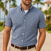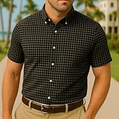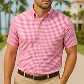 More information about Men's Summer Shirt Casual Shirt Beach Shirt Button Up Shirt Black Pink Dark Navy Short Sleeve Plaid / Check Lapel Vacation Hawaiian Button-Down Clothing Apparel Polyester Fashion Casual Comfortable