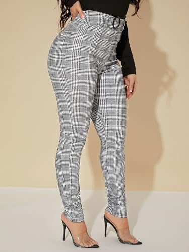 Womens Sexy High Waist Plaid Belted Pants Zipper Long Pant Trousers For Women 5