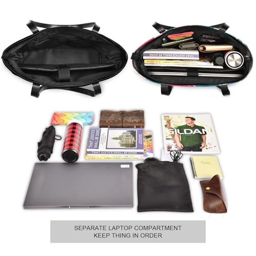 • ★Multi-Pocket Laptop Tote Bag:The laptop tote bag for women has a independent padded laptop compartment fits up to 14 inch laptop. The main compartment designed for documents, magazines, umbrella, water bottle and more office supplies. Insulated lunch compartment easily fitting your lunch box, drinks and fruit. The zippered back pocket for your important item like passport, plane ticket, wallet and cards.