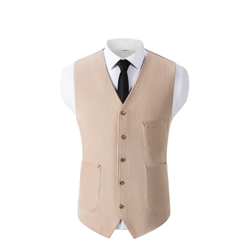 SevenBoy Men's Vintage Corduroy Suit Vest Casual V-Neck Dress Waistcoat 4