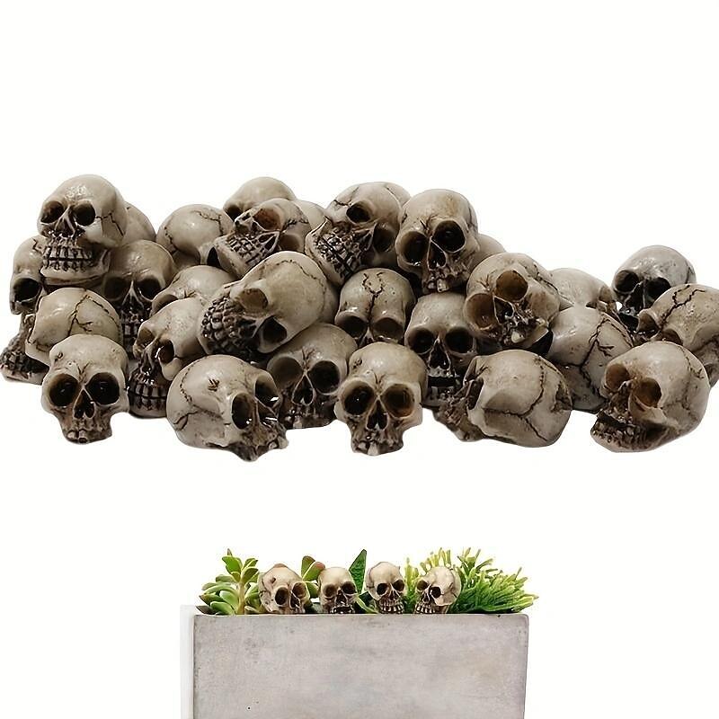 HOT ! 20pcs Mini Skulls, Halloween Small Skeleton Head Flowerpot Decor Realistic Skull Crafts Garden Decoration Bonsai Courtyard Ornaments