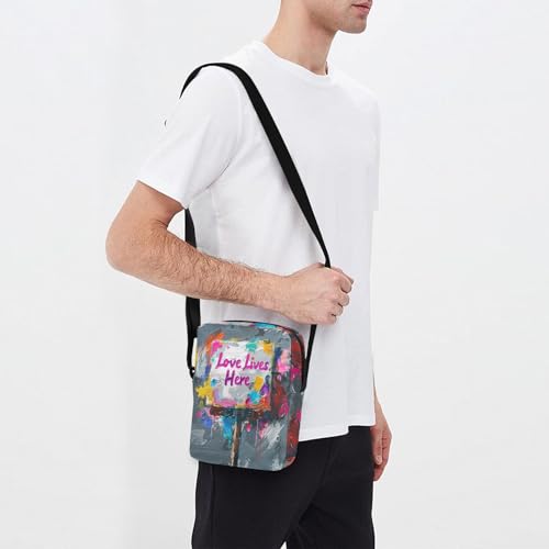 Text Love Lives Here small messenger bag for men Crossbody Bags For Women Small Casual Everyday Purse Adjustable Strap for Outdoor Daily Travel 6