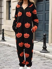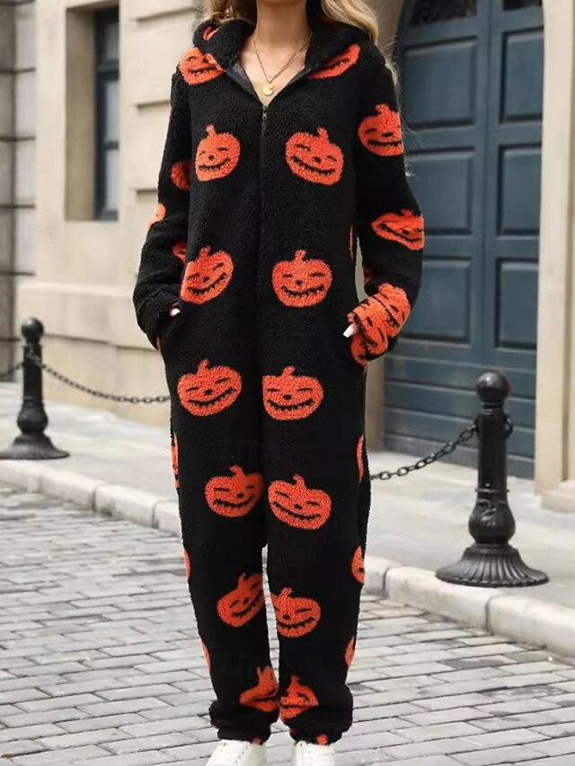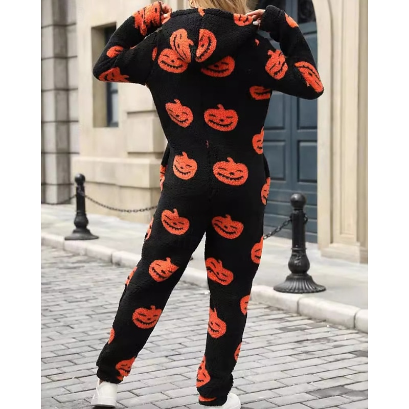 More information about Women's Normal Jumpsuit Active Pumpkin Long Sleeve Hooded Zipper Print Vacation Halloween Regular Fit Black Fall