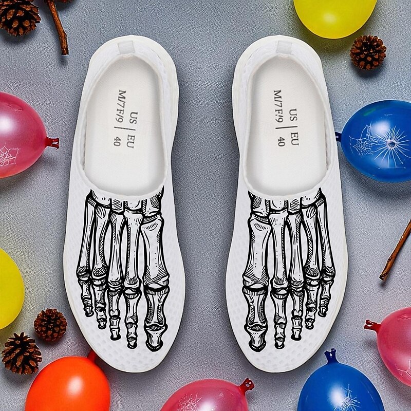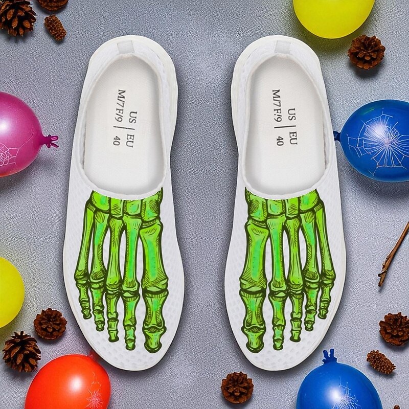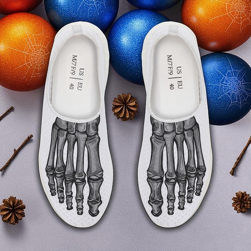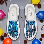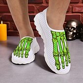 Men's Flyknit Slip-On Sneakers with 3D Skeleton Foot Print – Lightweight Breathable Casual Shoes for Halloween Parties & Cosplay 3