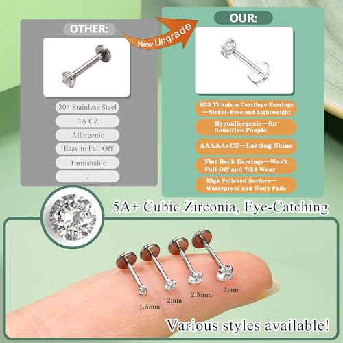 • 【G23 Titanium】These flat back earrings are made with G23 titanium, they are nickel free and hypoallergenic earrings for women and men, more suitable for sensitive ears than 316L surgical steel flatback stud earrings. These cartilage earrings for women trendy are lightweight, waterproof and very comfortable to wear, without burdening the skin.