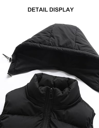 hathne Men's Winter Puffer Vest Sleeveless Warm Zipper Lightweight Jacket Vest with Removable Hood 6