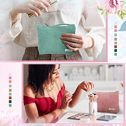 Hillban 12 Pieces Corduroy Makeup Bag Large Cosmetic Bag 10 x 7 Inches Zipper Storage Makeup Pouch Velvet Travel Toiletry Bag Brushes Accessories Organizer Purse for Women Gifts, 12 Colors 6
