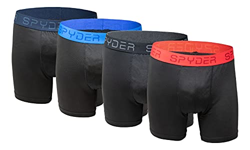 Spyder Mens Boxer Briefs 4 Pack Poly Spandex Performance Boxer Briefs Underwear (Black Large) 4