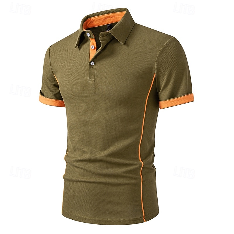 Men's Waffle Polo Shirts Golf Shirt Work Casual Lapel Short Sleeve Basic Modern Color Block Patchwork Buttons Summer Regular Fit Black White Navy Blue Army Green Waffle Polo Shirts 17