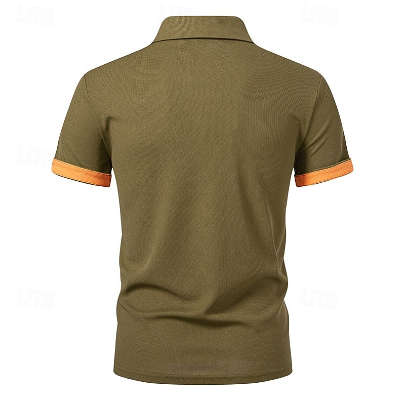 Men's Waffle Polo Shirts Golf Shirt Work Casual Lapel Short Sleeve Basic Modern Color Block Patchwork Buttons Summer Regular Fit Black White Navy Blue Army Green Waffle Polo Shirts 9