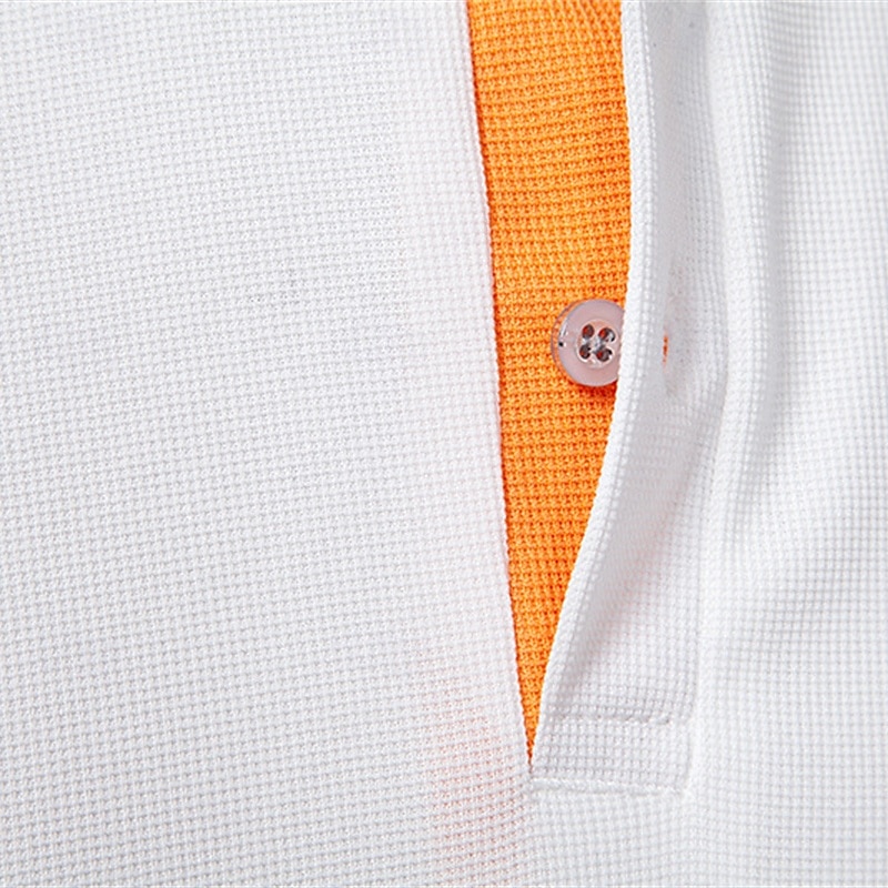 Men's Waffle Polo Shirts Golf Shirt Work Casual Lapel Short Sleeve Basic Modern Color Block Patchwork Buttons Summer Regular Fit Black White Navy Blue Army Green Waffle Polo Shirts 11