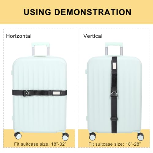 • Easy to Identify Traveling Accessories. Our luggage straps for suitcases has a build in name card, which allow you to write your information on it and help you easily spot your belongings at airports, bus stations, or from a distance. Save your time and make you have a pleasant journey