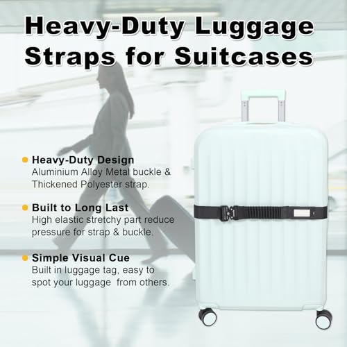 Vigorport Luggage Straps for Suitcases TSA Approved Suitcase Belt, Stretchable Travel Strap for Luggage, Heavy Duty Metal Buckle Luggage Belt Strap (Black, 72" Long/1PK) 4
