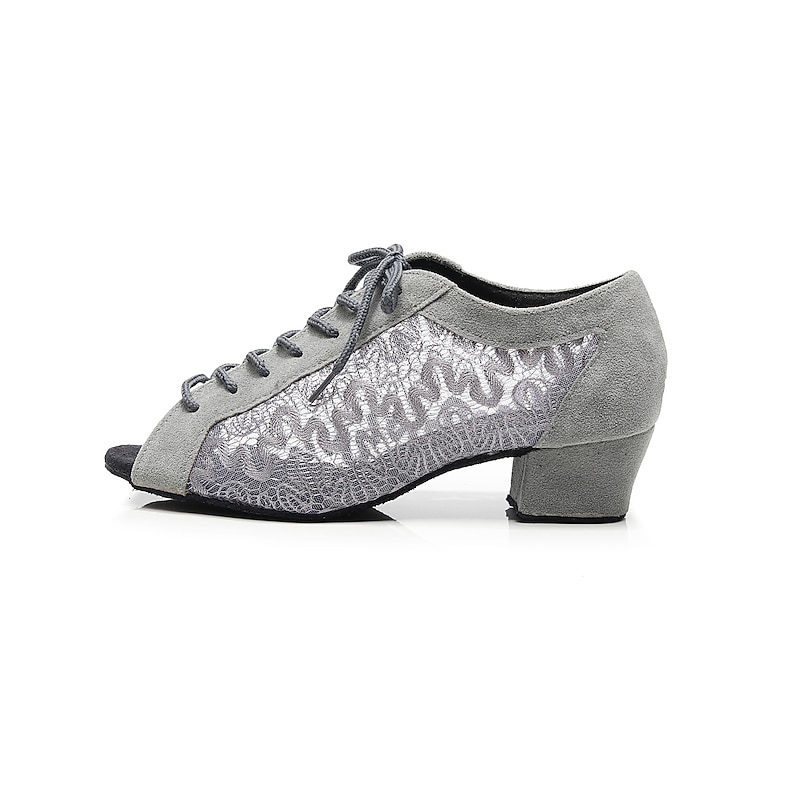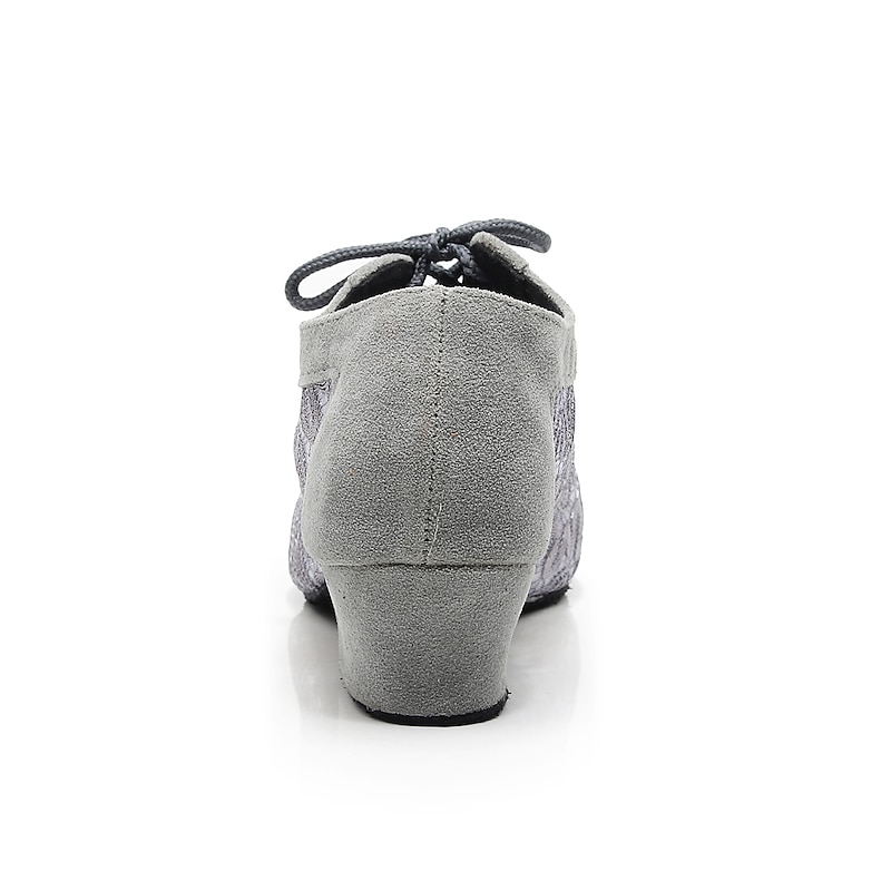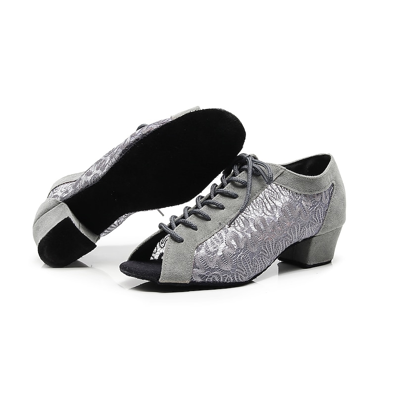 Highlights [Fabric] : Crafted with a blend of sophisticated lace and sturdy faux suede, these women's dance shoes offer durability and elegance that complements any outfit. The lace accents provide a delicate touch, while the flannel lining ensures comfort during wear. [Fit] : Featuring a peep-toe design, the shoes are created for breathability and comfort, making them ideal for extended practice sessions and performances. The lace-up closure allows for a personalized, secure fit. [Design Highlights] : These dance shoes boast a low, thick heel that offers stability and ease of movement, essential for both beginners and experienced dancers. The subtle embroidery details follow 2024 fashion trends, adding a modern flair to these classic shoes. [Occasions] : Perfect for practice training, performances, and line dancing, these shoes are designed to support various dance styles while providing flair and functionality. They are suitable for both casual and competitive dance environments. [Size Range] : Available in a variety of sizes from US4-4.5 to US10.5, these shoes cater to a wide range of dancers. The customizable options ensure that each dancer can find the perfect pair that meets their specific needs.