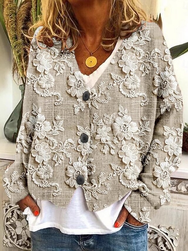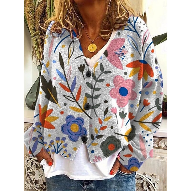 HOT ! Women's 3D Print Cardigan Sweater Knitted Ribbed Button Front V NeckLong Sleeve Lightweight Casual Soft Floral Buttons Print Regular Tops Knit Outdoor Daily Weekend Blue Green Fall Winter