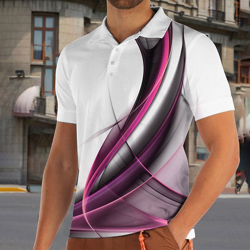 More information about Men's Geometric Polo Shirts Golf Shirt Short Sleeve Polo Shirts Collared Shirts Business Casual Vacation Wear Formal Wear Festival Wear Buttons 3D Print Black White Pink