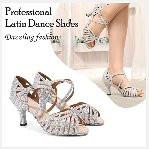 HIPPOSEUS Women's Professional Latin Dance Shoes Rhinestones Ballroom Salsa Bachata Practice Performance Dance Heels Suede Sole 1