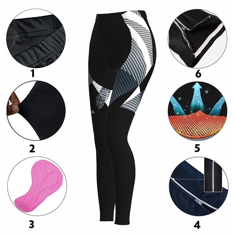 Highlights 【Breathable Wicking Highly elastic】Our cycling clothes use high-quality polyester fabric with 80% polyester and 20% spandex have a great moisture-wicking function, skin-friendly, breathable and quick-dry, make you feel more comfortable.Four-way stretchy crotch with high elasticity 【3D Thickened Protection Pad】Designed with gel padding inside and 3D thickened foam padding to fit nicely around your hips without slipping,protect your hipbone from injuries. 【Ankle Zipper&Silicone Gripper】The special zip design can make the pant more fits your leg, and the silicone anti slip band on the bottom of bike pants can ensure your riding safety, for it can fix the biking tights leg opening, prevent pant legs from getting caught in the bike while cycling