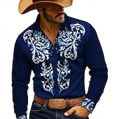 More information about Men's Floral Print Ethnic Flowers Shirt Western Shirt Button Up Shirt Long Sleeve Vintage Retro Outdoor Casual WorkWear Spring Fall Turndown 3D Print Collared Shirts Dark Blue