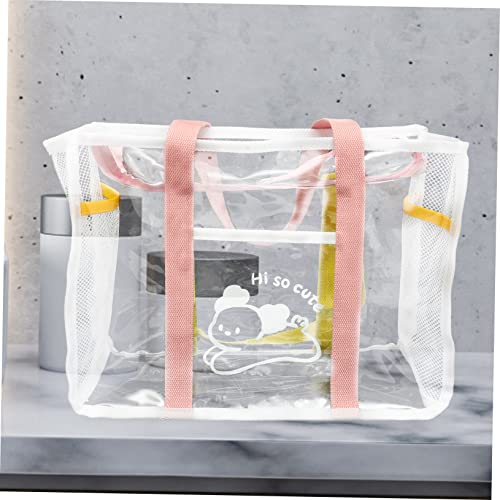 Summer Beach Tote Portable Handheld Bag for Women Lightweight Travel Tote for Beach Accessories Organize Towels and Toys Durable Transparent Shoulder Bag Pink 7