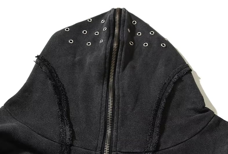 More information about Men's Y2K Gothic Zip Up Hoodies Trendy Grinding Edge Masked Hoodies Hip-Hop Washed Jacket