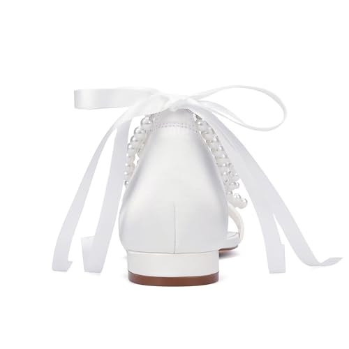 Flat Wedding Shoes for Bride Pearl Sandals Open Toe Wedding Flats Double Bowknots Bridal Flats 4