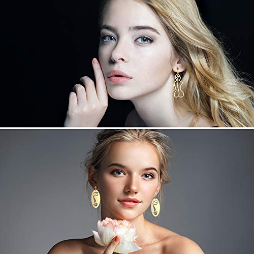 • Exquisite style: our gold face earrings are shaped in diverse hallow human face, hand or body styles, with golden color and abstract style, look simple and exquisite, full of art feeling, they will make you more elegant and attractive